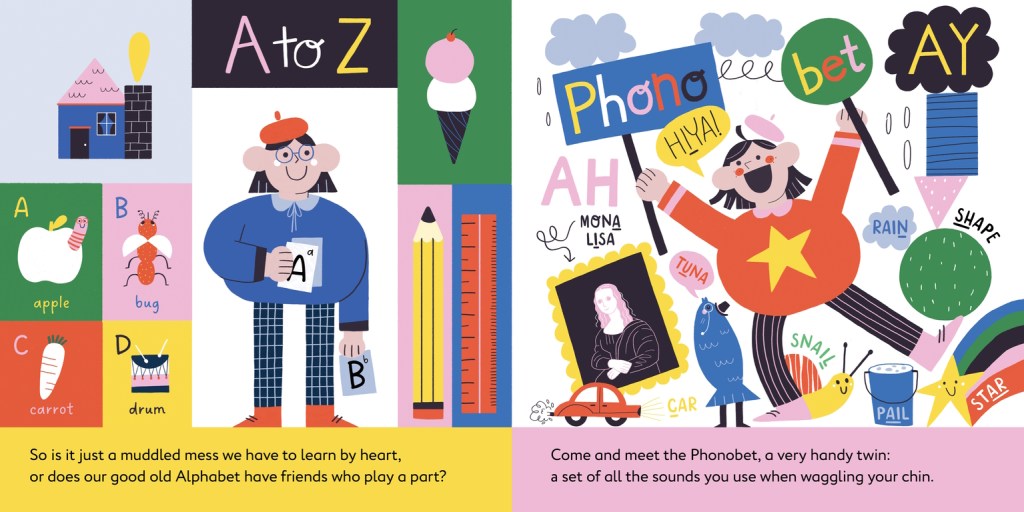 Phonobet is a modern-day, Australian answer to Dr Seuss’s ABC. It takes readers on an onomatopoeic romp through the 44 phonemes of Australian (and British) English, comparing sounds to trees, bees, trains, robots, monkeys, pirates and more.